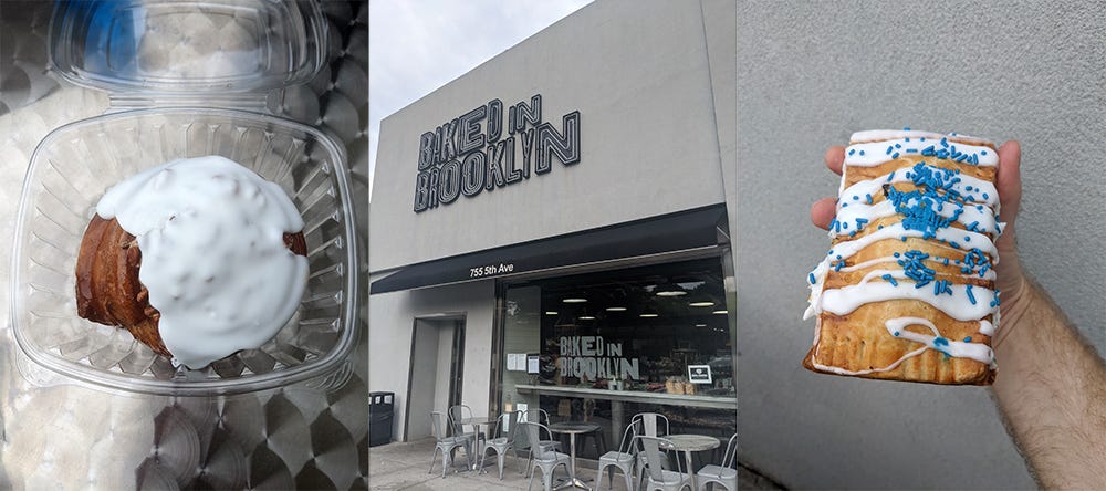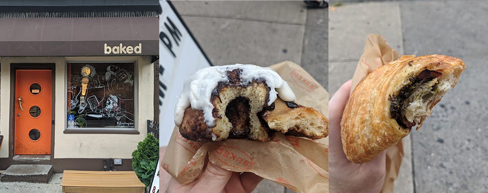 One of the rituals that developed on my team at work was bringing in baked goods - for birthdays, work anniversaries, or because you just felt good. When we all started working from home, this became something I missed and kicked off a habit of looking to see what places were still open and treating myself once or twice a week to something tasty. I started posting things on Instagram (@clinejj), one thing led to another, and now I’m sending you emails. The internet is a marvelous place.
